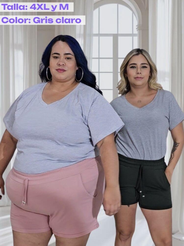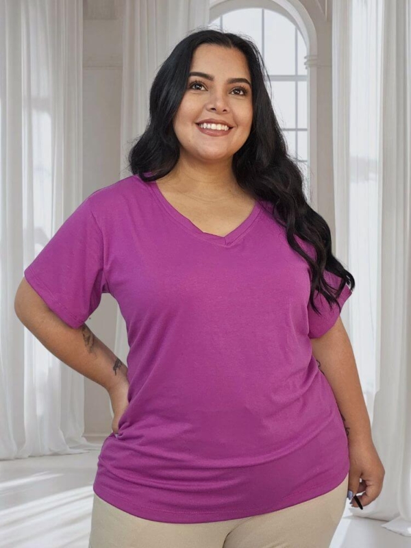 Básica cuello V en algodón licrado – Tallas M a la 5XL – ref. Malibú